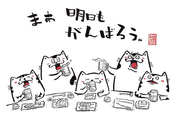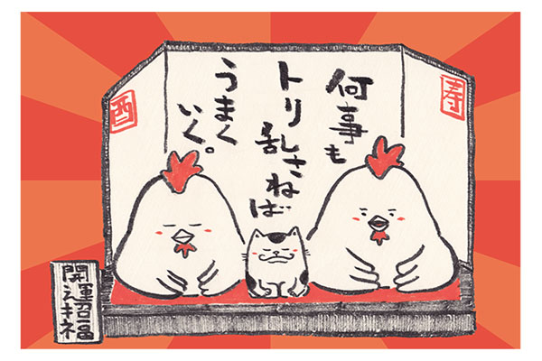 気合いにゃんこシール イラスト色紙 NEW YEAR CREATIVE CONPETITION2017採用作品 酉でひとこと。 NEW YEAR CREATIVE CONPETITION2017採用作品 酉でひとこと。 おにぎり いやん ねんねこねこ展より